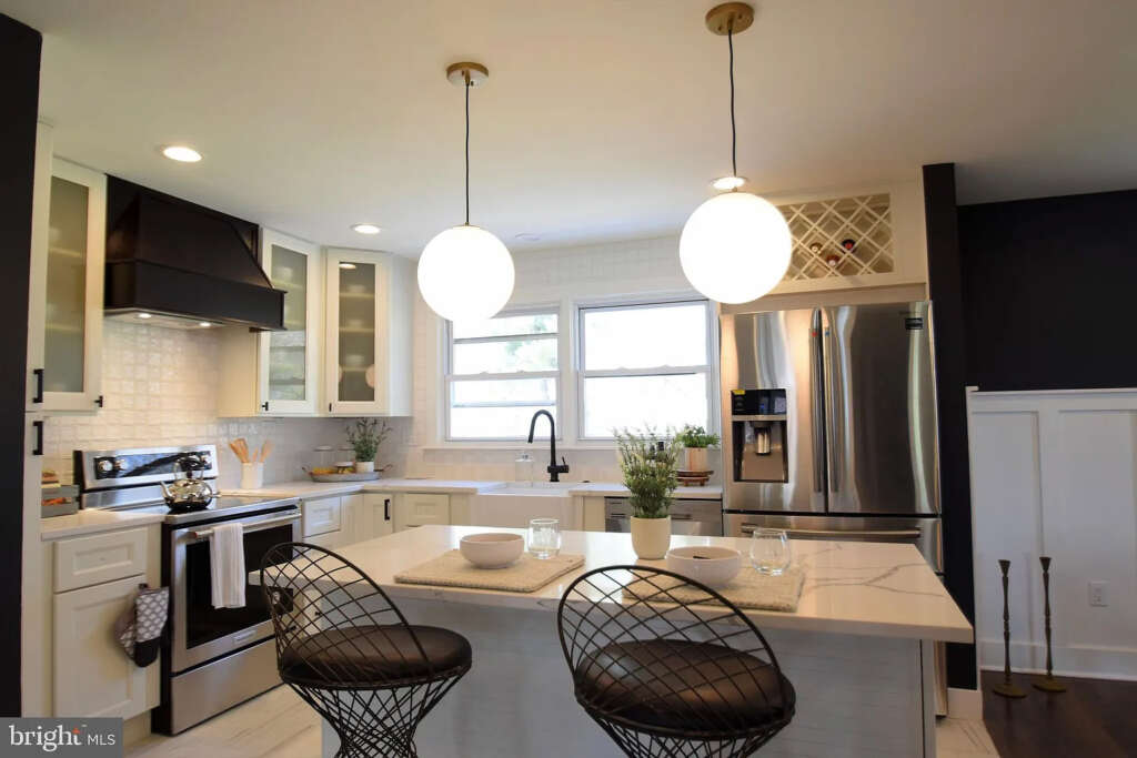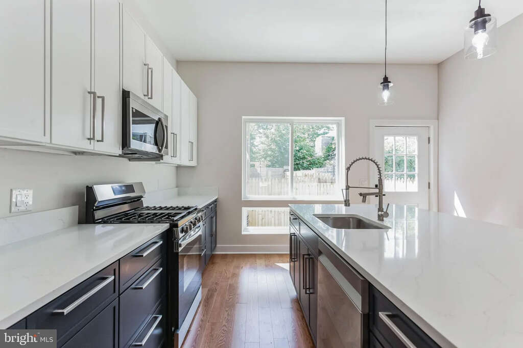 Freshly renewed home. Walking distance to good Elementary school. Hardwood Flooring throughout, modern, quality finishes, quartz and solid surface kitchen and bathrooms, solid wood soft close cabinets, eat-in breakfast countertop, LED lighting, den with modern fireplace, new deck for bbq, new efficient windows with w/warranty, new efficient heating and ac w/ warranty, new roof w/lifetime warranty, new doors, new millwork, new stairs, new etc.Top of the line ss appliances. Warranties for all new installations. Walking distance to lake and parks. den, dining, living and 4 good size bedrooms. master bath. Modern and open plan.